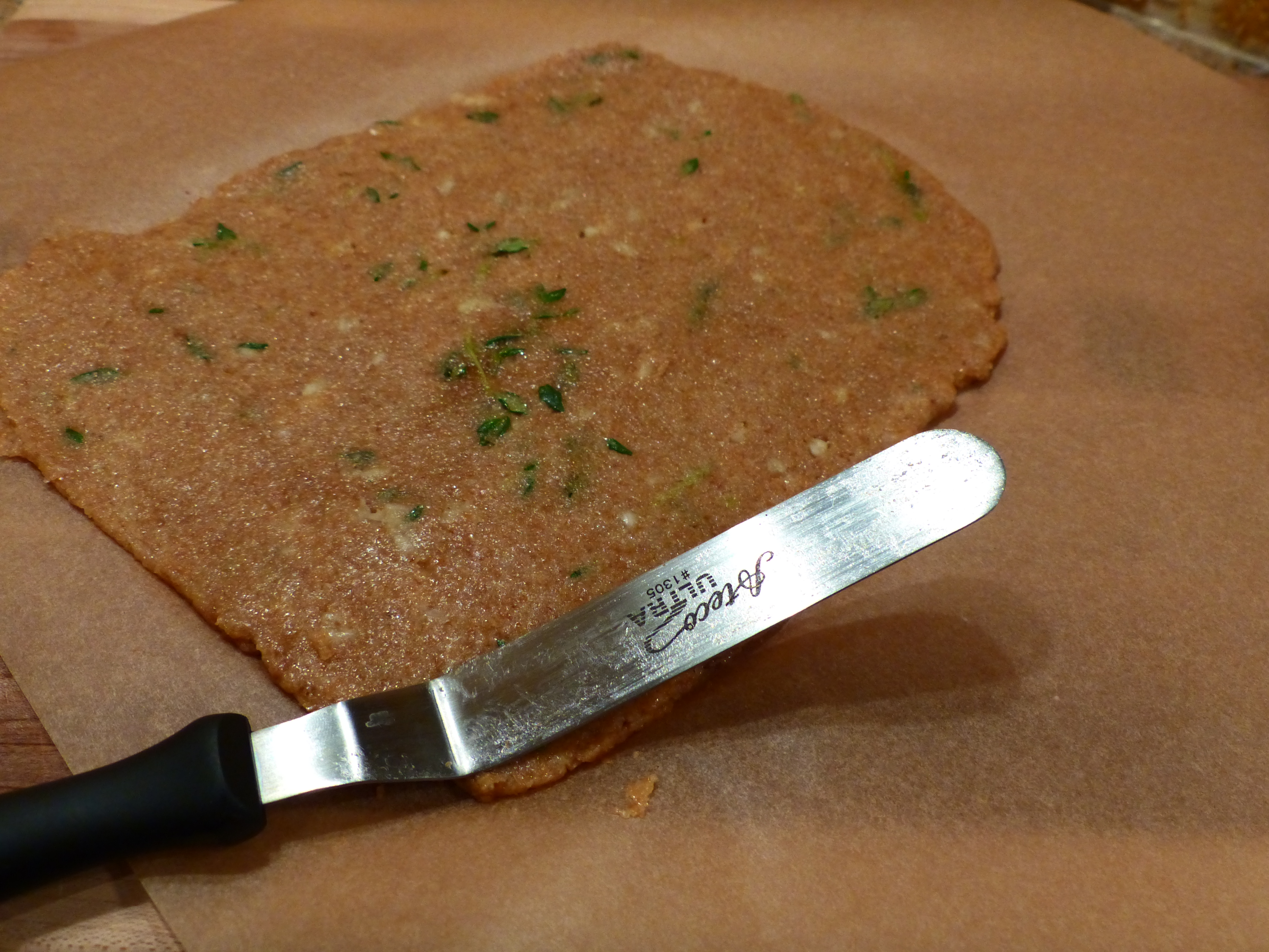 Mix ingredients together. Spread dough onto parchment paper to no more than 1/4″ inch thick. Place entire parchment sheet onto dehydrator rack.