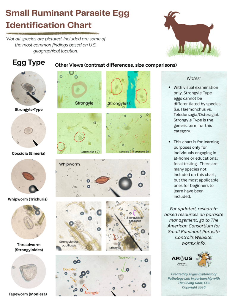 When you finish reading this article, come back and click below to access my free (because I believe in goatkeeping, not gatekeeping) eBook to learn step-by-step how to perform your own fecal tests. The eBook is located on my Sellfy site which allows optional donations to be made to support the accessible learning provided by The Giving Goat, LLC. No payment is required, however. This eBook will provide the following: